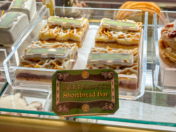 You’ll find the Butterbeer Shortbread Bar for $8 at Sugarplum’s Sweet Shop in Diagon Alley in Universal Studios. This treat was introduced for Butterbeer Season across Universal Orlando, which takes place from March 1st through May 31st — yes, that means that you’ve only got about two more months to grab this treat, unless Universal decides to keep it around.