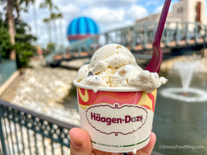 We know, you may be sitting there going, “What?! No, I’ll never get tired of the Disney food, that’s a big reason why I’m going!” We 100% get that, but take it from us — we’re in the parks EVERY day, and our team members who don’t live locally travel in pretty often, and they’ll tell you firsthand that if your trip is 5+ days, you’ll eventually be craving something normal. One of the best places to head for a generic sweet treat in Disney Springs is none other than Häagen-Dazs, even though this spot is often overlooked!