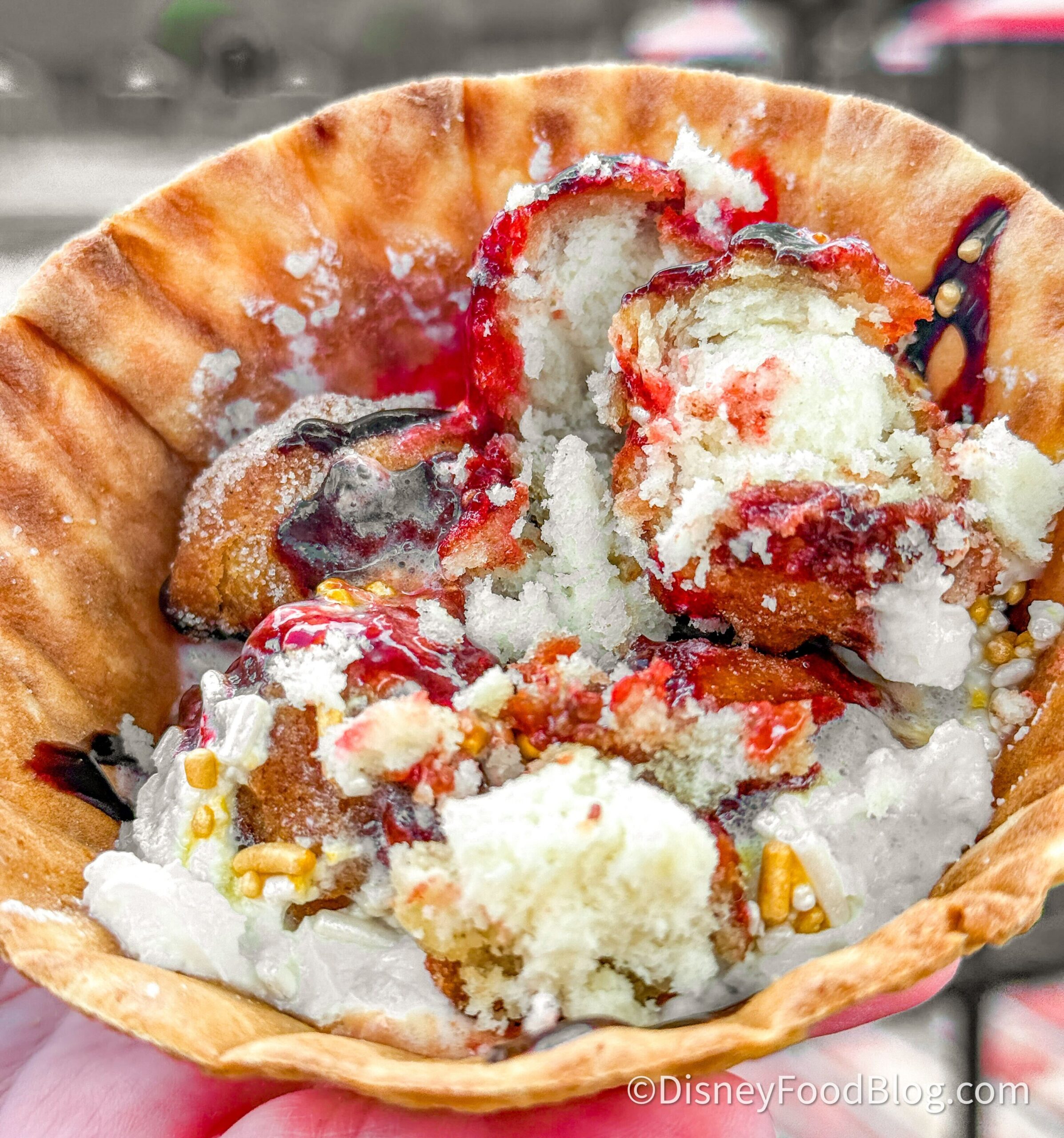 While this was a great snack, we did notice that both the churro bites and the waffle cone bowl started to fall apart over time, so this might be a snack to eat quick. There were a few functionality elements to keep in mind when grabbing this snack. They provided napkins, but be sure to grab a few extra!