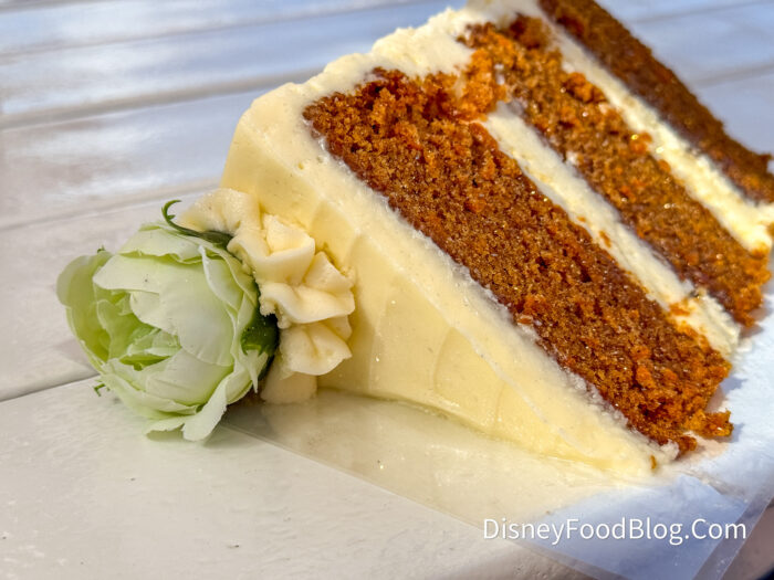 While the flower on top isn’t edible, we did think it was a very pretty touch! The cake was moist, sweet, and not too dry at any point. While Easter might be over, this is a great bite to grab to celebrate the holiday.