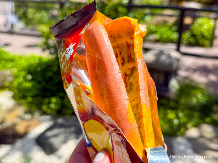 Well, one of our favorite spots to shop for such snacks is at Mitsukoshi in the Japan Pavilion. Here, you’ll find LOADS of Japanese treats, and well, we just found some new frozen treats that we HAD to try, although one was actually sweet potato-flavored. Let’s take a look at these treats, and we’ll give you our honest thoughts.