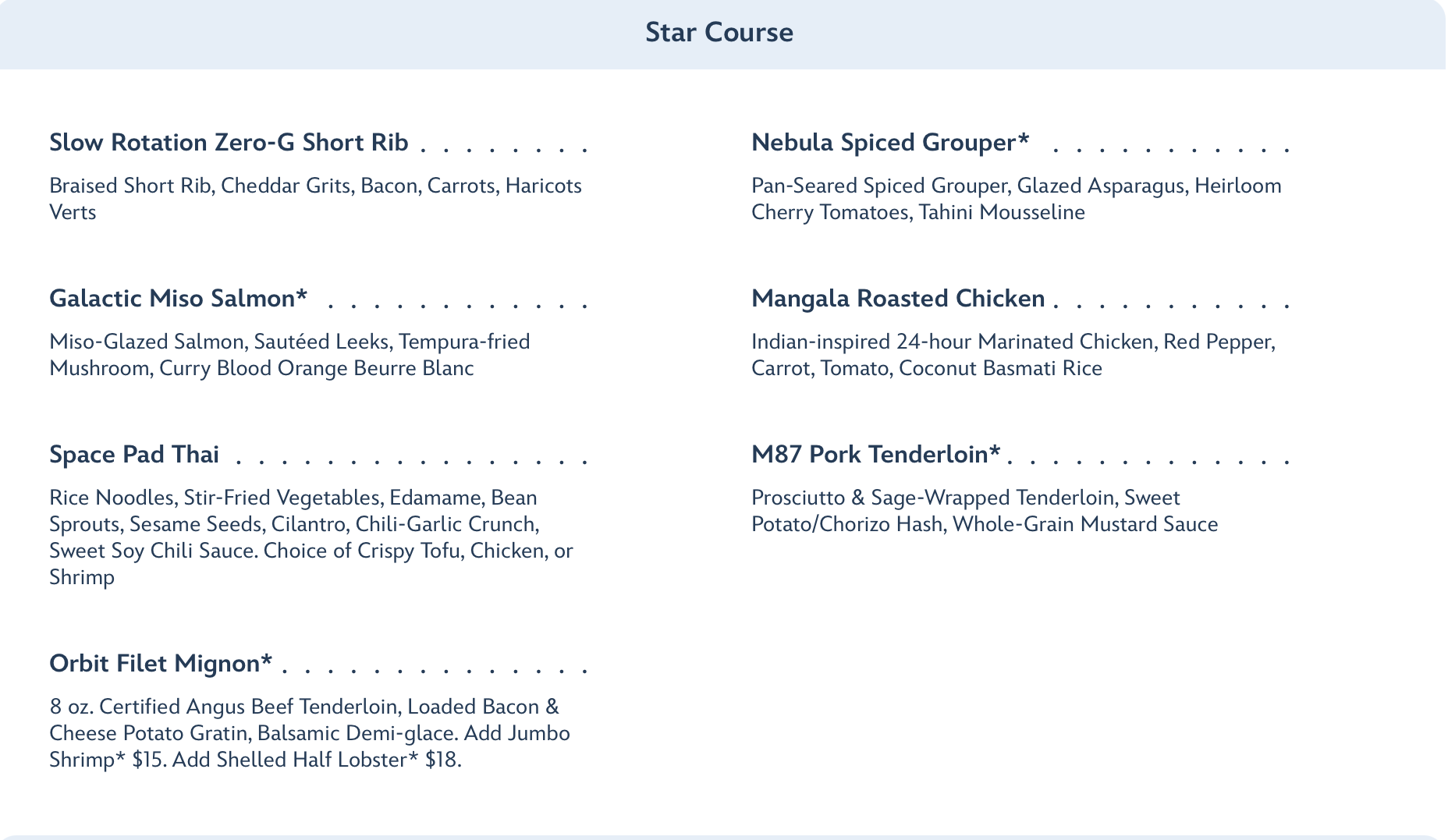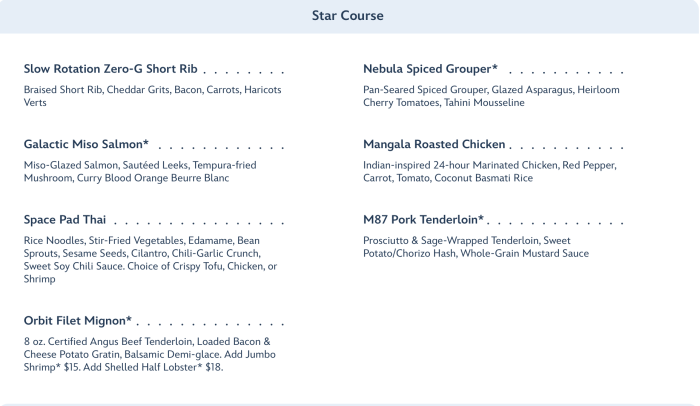 … and Star Course entrees somewhat differ for dinner.