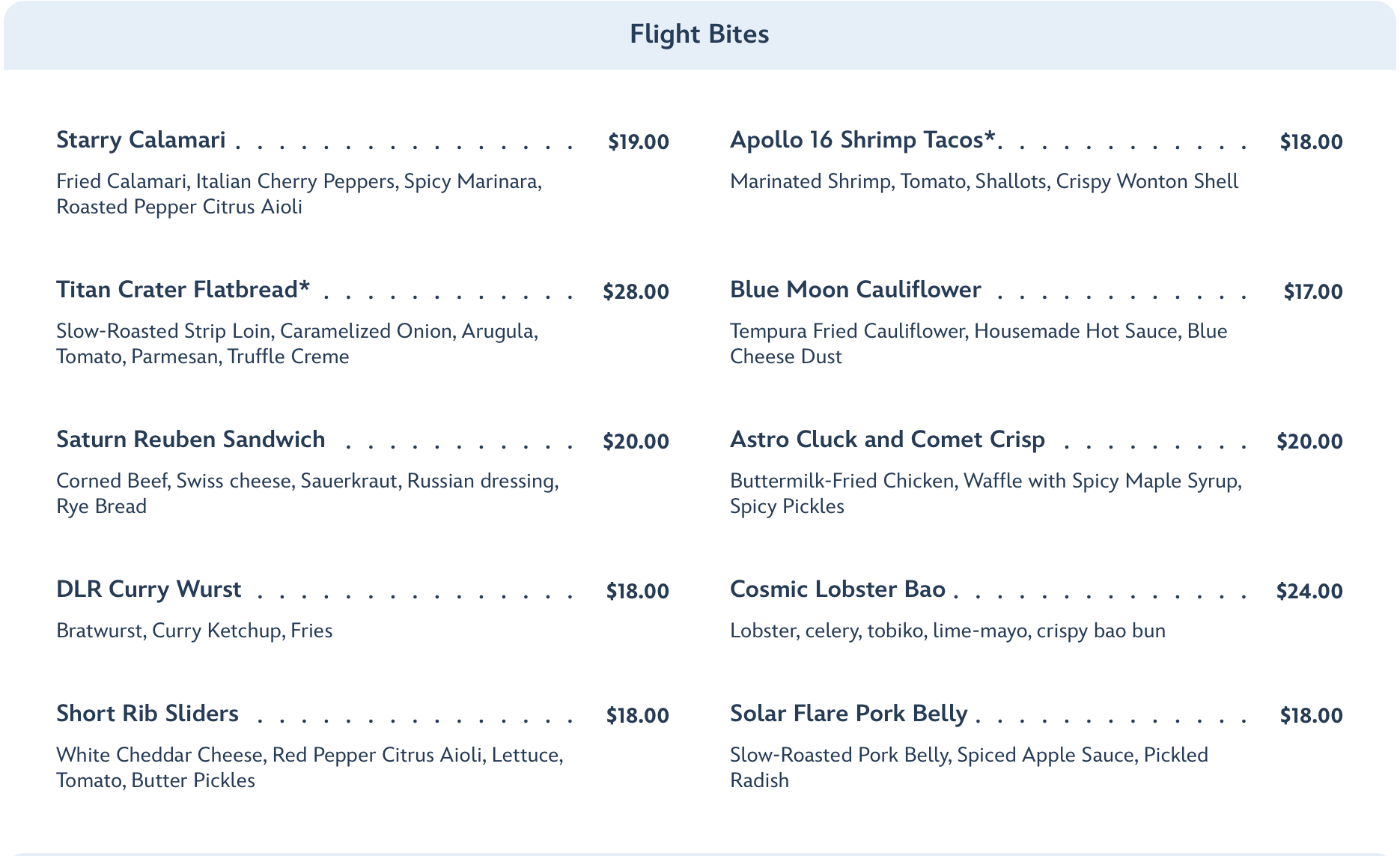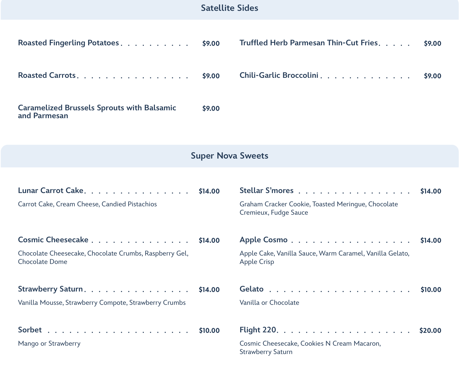 For an additional cost, Satellite Sides and Super Nova Sweets are available.