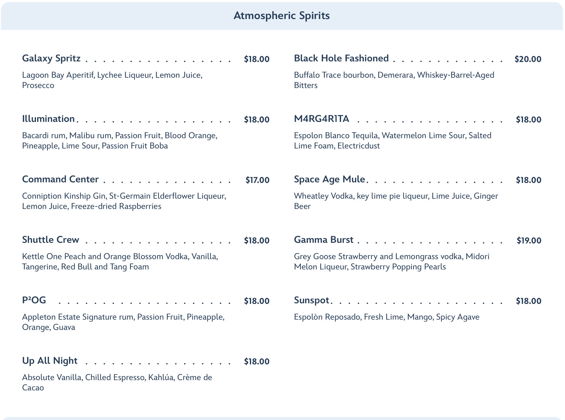 There are also kids’ menus available for both courses, which cost $29 for lunch and $35 for dinner, as well as a menu of Atmospheric Spirits cocktails…