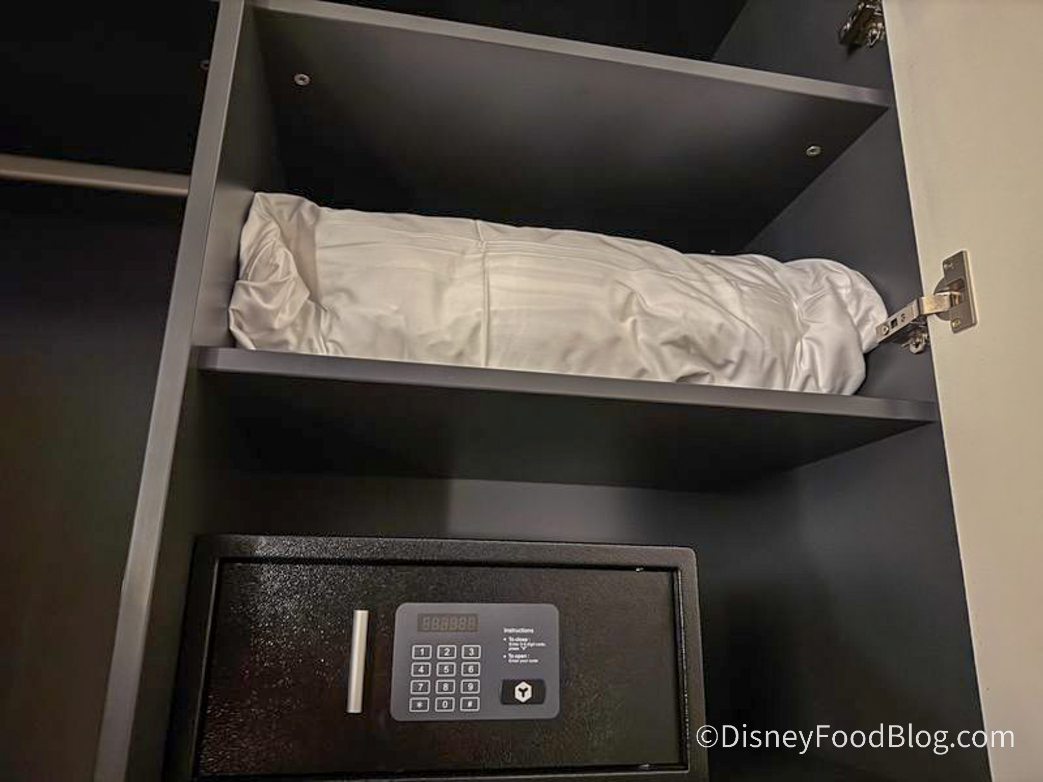 Back in the bedroom area, there are also some standard offerings, like a closet and safe.