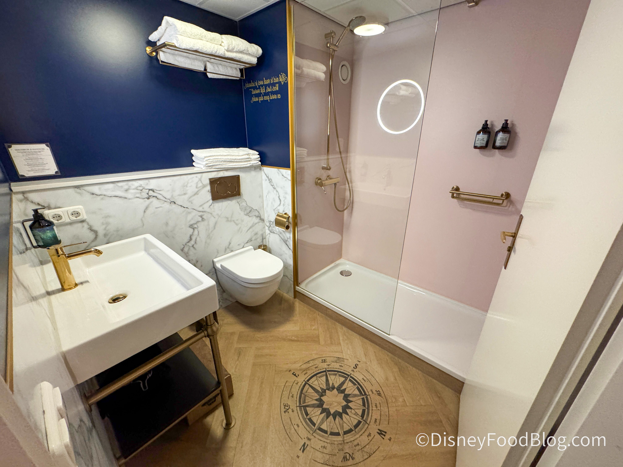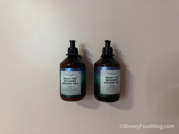 You’ll also find standard amenities like towels, hand soap, shampoo, and body wash.