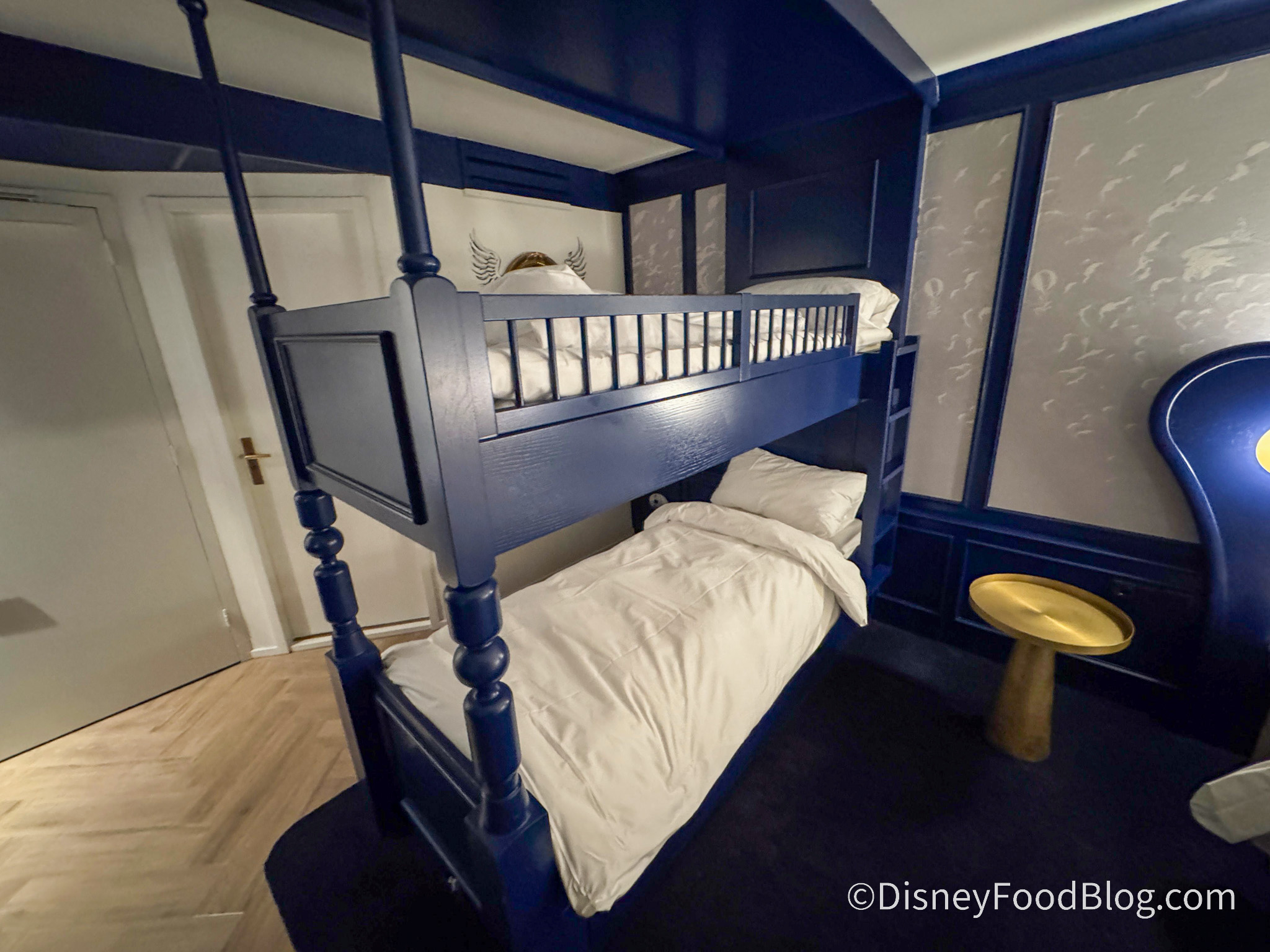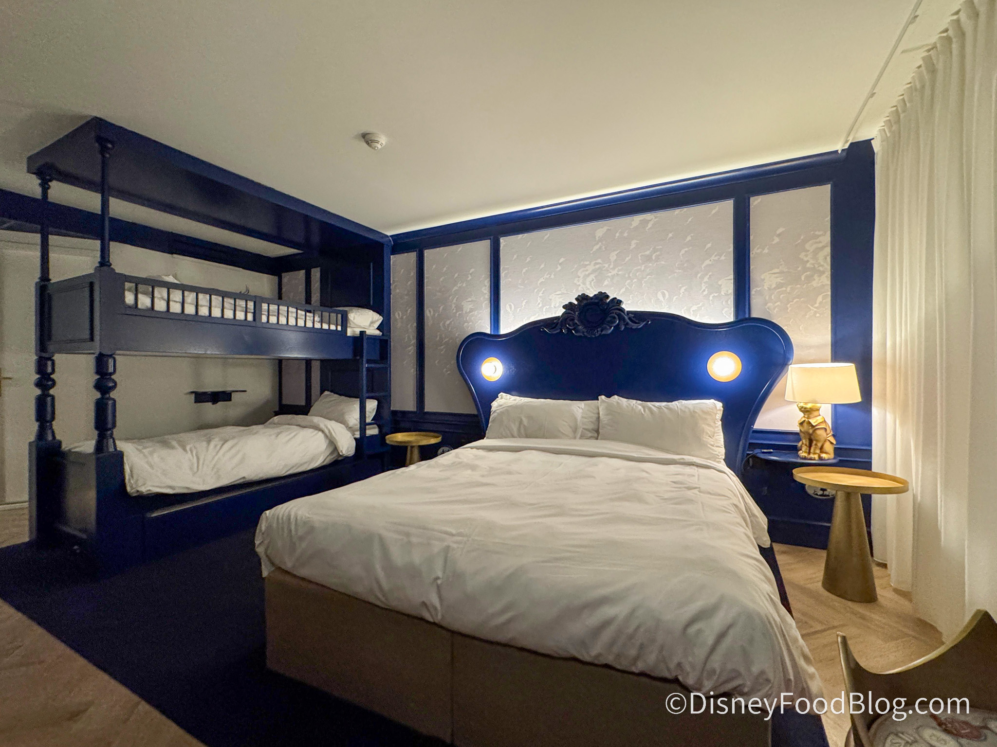 Our room size was fairly standard with a white and blue theme (along with white and dark blue curtains with a galactic sparkle), but it’s the finer details that really stood out.