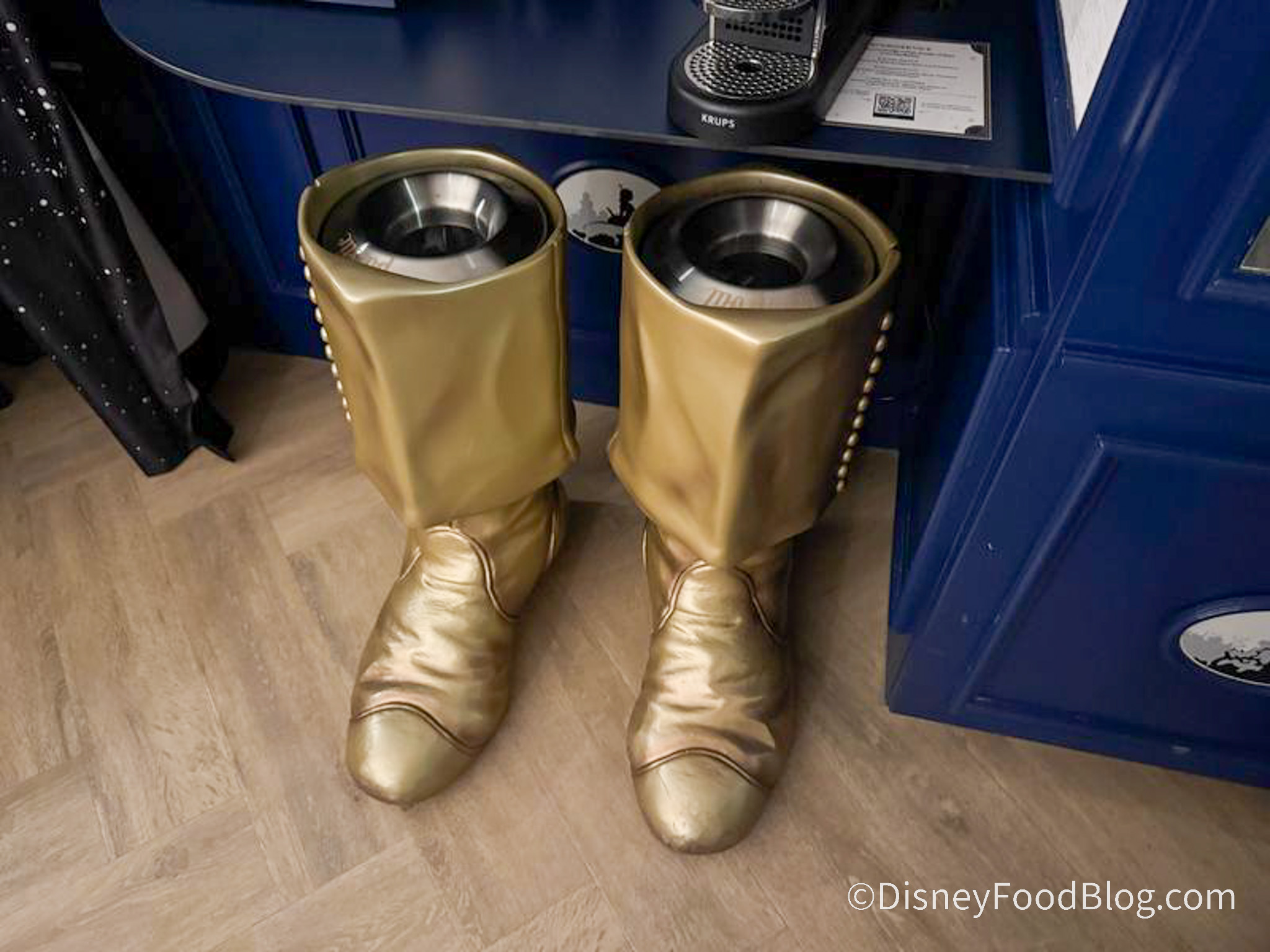 There are a ton of fun quirks like this in the room, like the trash cans shaped like golden boots!