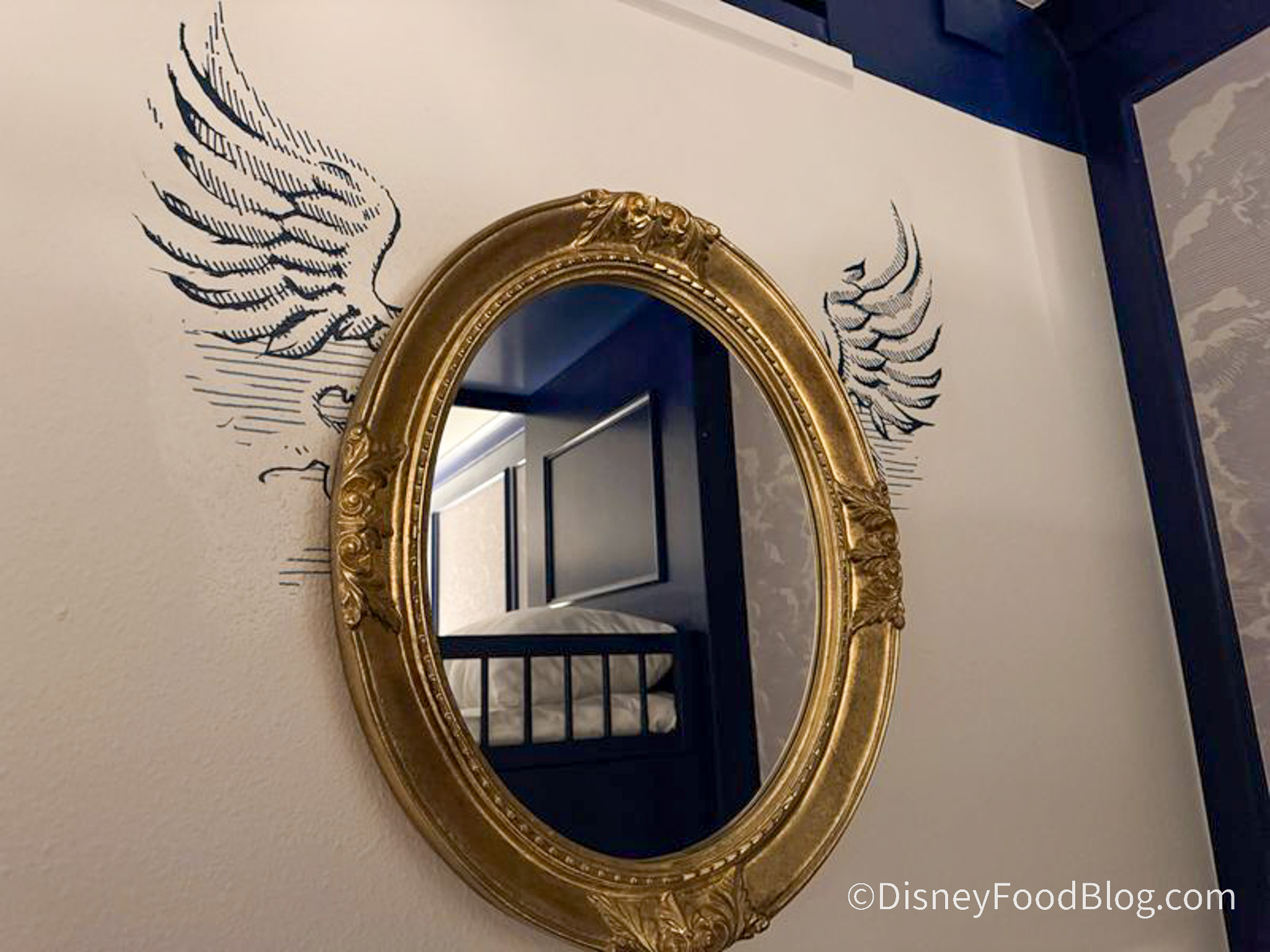 You’ll even notice that the room’s mirror gets in on the fun with a winged design.
