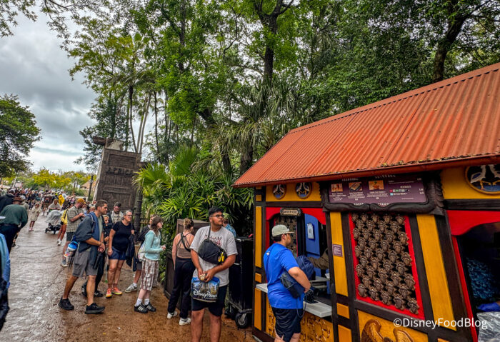 Even on a rainy day like yesterday, the Cookie Dough Brownie Ice Cream Sandwich still had a pretty long line! Just goes to show how good this thing is — people were even willing to wait in the rain for it! Every once in a while, a Disney snack comes along that’s totally worth the hype, and this one really is. Make sure you check it out on your next trip to Animal Kingdom! Unfortunately, it’s not available via Mobile Order, so you will have to wait in line for it. If you’re an ice cream fan, though, we think it’s worth it.