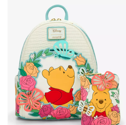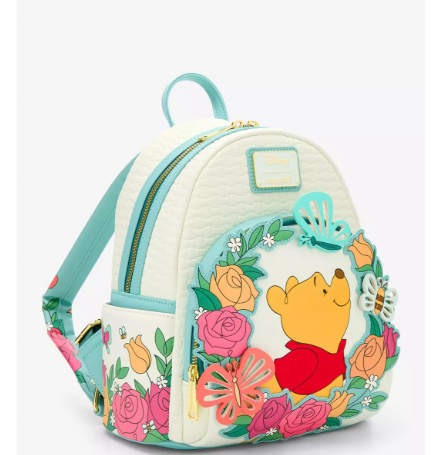 Now we get into the part of the collection that feels like Pooh went to a garden party and came back looking expensive. The floral mini backpack is for the Winnie the Pooh fan who likes a softer, prettier take on character merch. It still gives you the sweetness of Pooh, but with a more polished, boutique-y vibe that makes it feel a little less overtly fandom-forward and a little more “I just happen to have impeccable taste in whimsical accessories.”