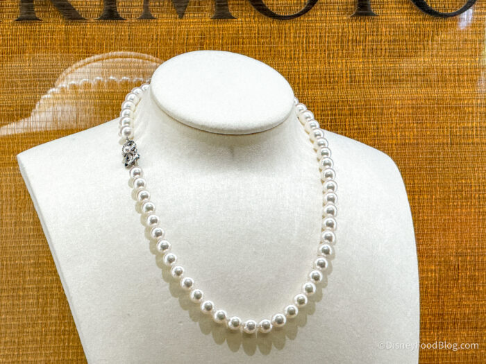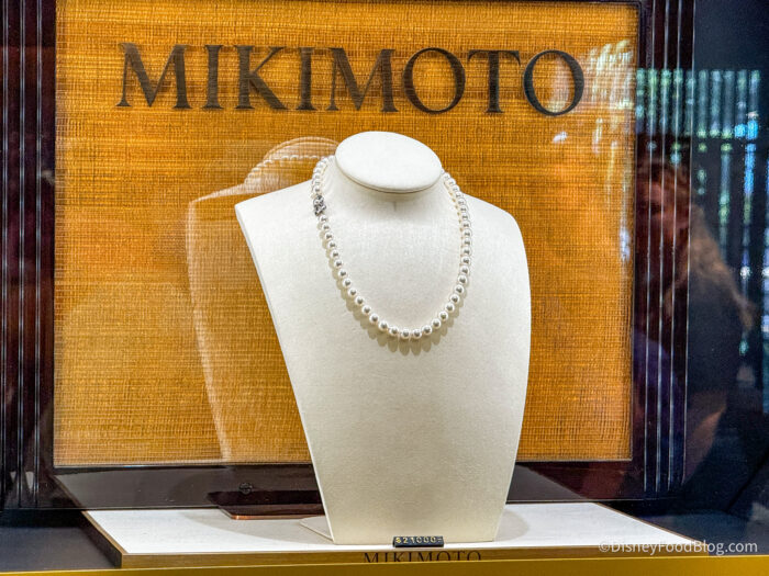 This is easily one of the most expensive souvenirs we’ve seen in Disney World (but not the most expensive, believe it or not!), and what we especially find interesting is that, from a quick search on Mikimoto’s website, there are many other similar-looking pearl necklaces they sell that are much more affordable. They seem to range in price from $4,500 to $16,500 for white pearl necklaces and also offer pearl necklace-and-earring combinations for $20,000 to $47,000.