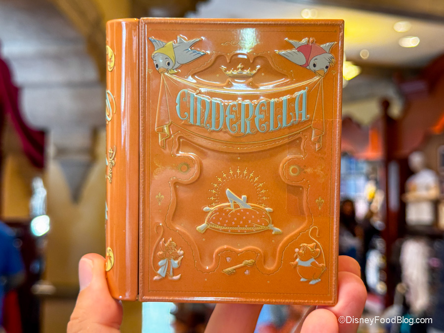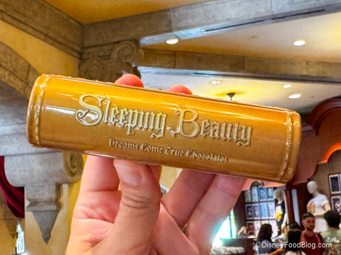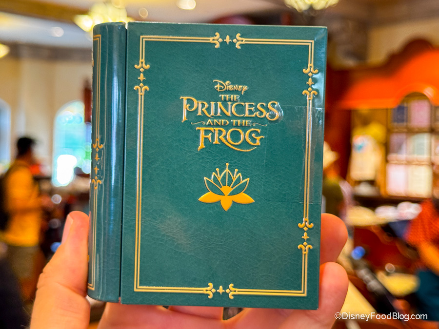 Now these little souvenirs have been around for a little while. We’ve seen them in Magic Kingdom and EPCOT. Well, we got a closer look at them when we visited the Once Upon A Time store in Disney’s Hollywood Studios, and we are IN LOVE. So these little souvenirs are little princess storybooks. But what makes these storybooks special is that inside are chocolate candies! YUM! We spotted storybooks for The Princess and the Frog…