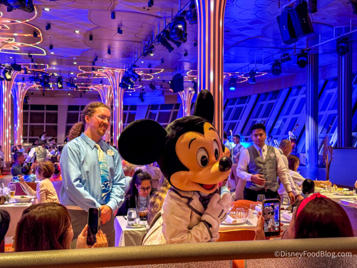 This isn’t just a nice meal, though — it’s also a show! During our meal, there was an incredibly talented vocalist who sang throughout the night, and Mickey, Minnie, Daisy, and Donald came to say hello in their Hollywood best. Now, they don’t necessarily stop at each table to take photos, but we did see them come around about 2-3 times so we could wave hello.