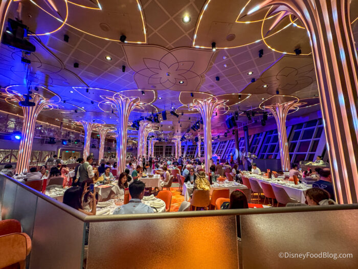 One of the aspects of sailing that really impressed us, other than the incredible atmosphere and theming of the ship, was all the dining options. There are so many restaurants to explore on this ship, it felt a little overwhelming, but when we saw how stunning the Hollywood Spotlight Club was, we knew we had to make time, and WOW are we glad we did!