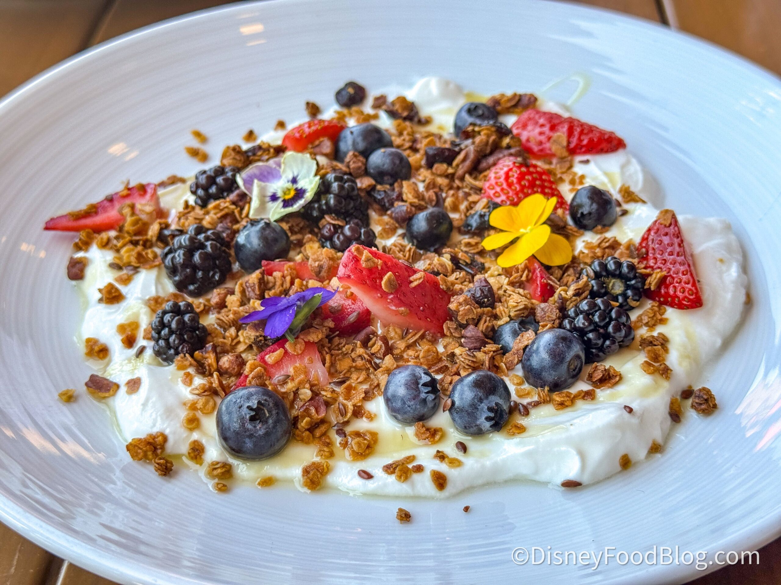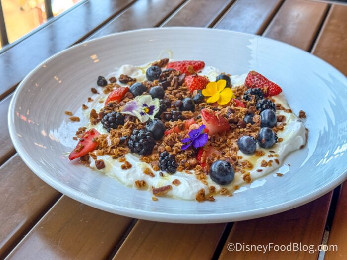 First up, we have the Yogurt Parfait for $10, which comes with Greek yogurt, fresh fruit, and granola.