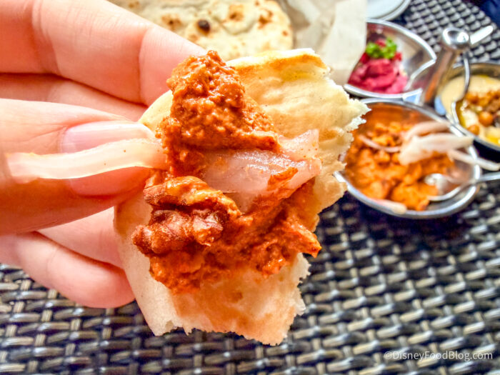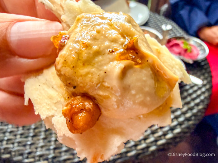 The naan is perfectly cooked, making it soft, tender, and perfectly pillowy. The hummus is classic, but done very well, and we love the difference in texture thanks to the fried chickpeas, but it’s very garlic-forward, so you’ve gotta be a fan of that flavor!