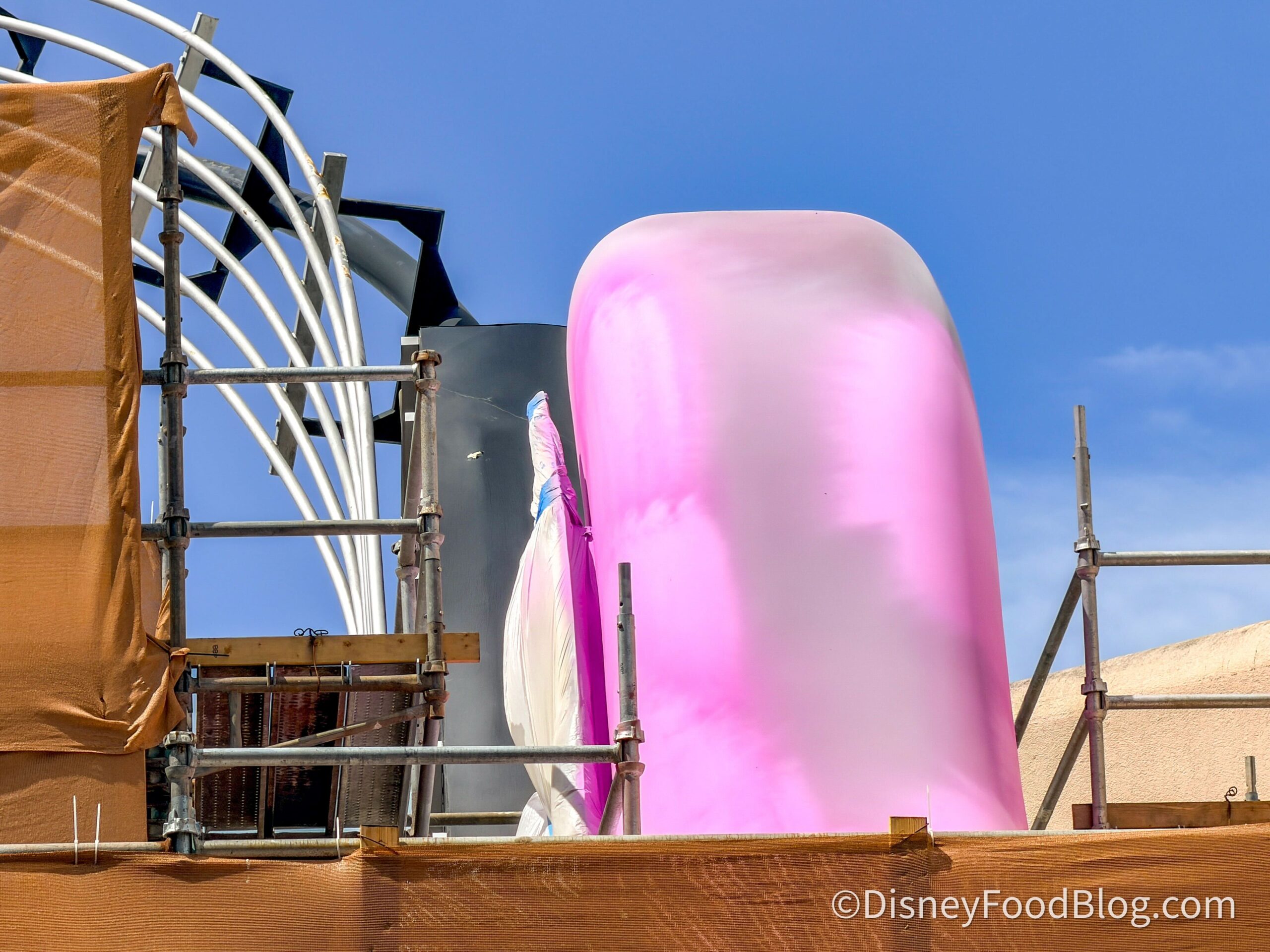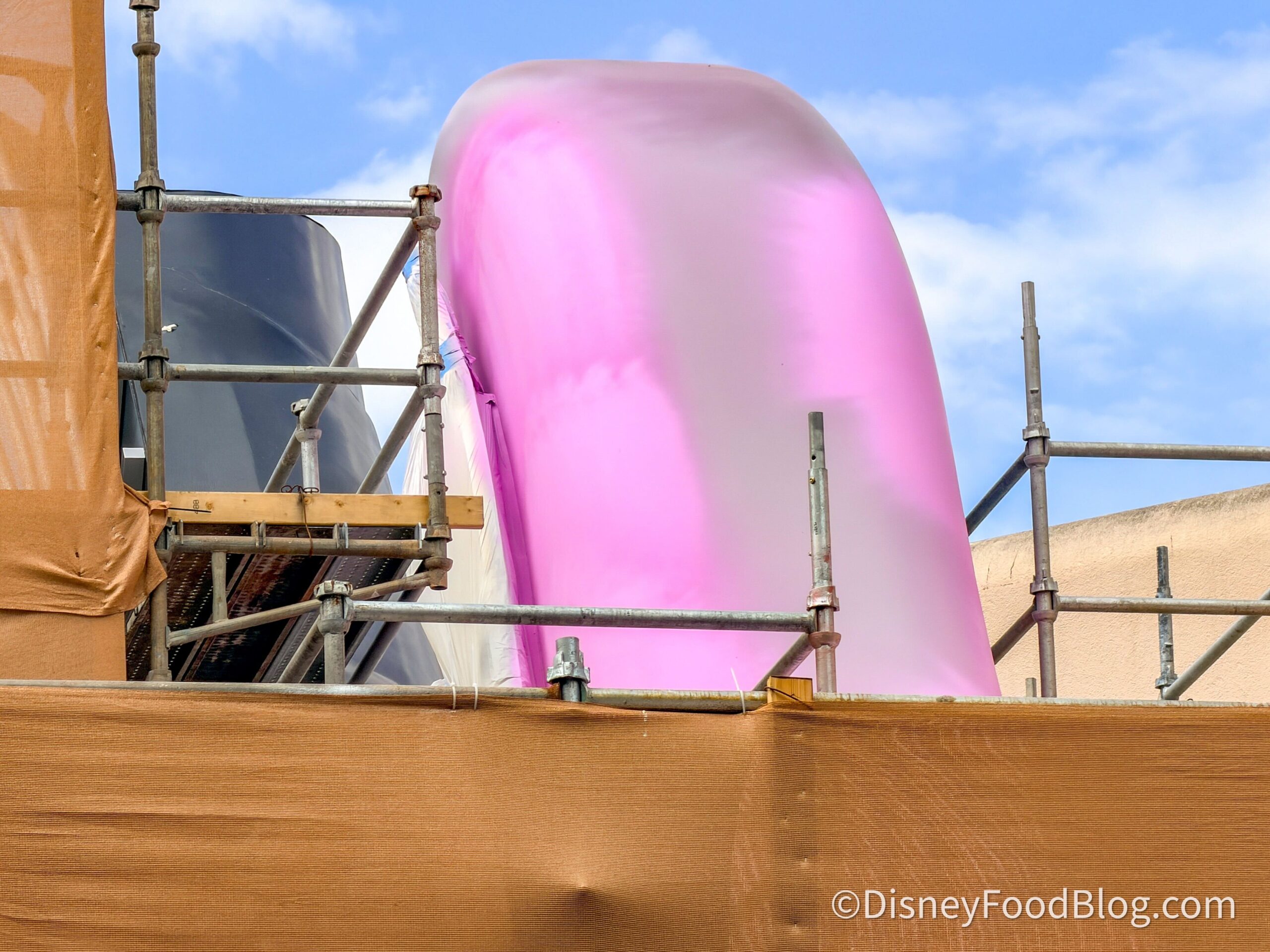 From outside the attraction, we can see details like a giant guitar and a car. We’ve been keeping an eye on the car being repainted, but now Disney is working on the guitar, and it looks awesome!