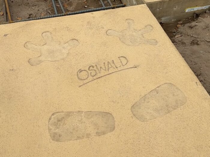 Of course, Disney icon Oswald the Lucky Rabbit has stopped by to drop his hands and feet in the ground…