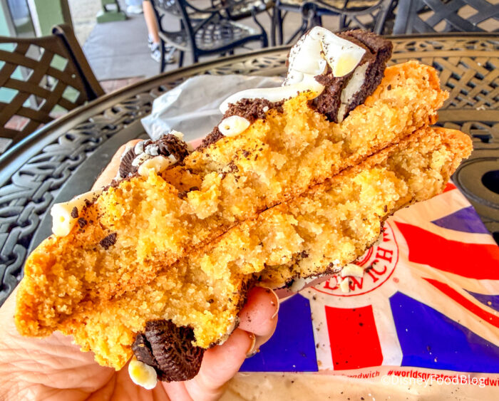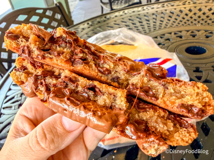 Sure, you know that Gideon’s Bakehouse and Summer House on the Lake are famous for their cookies, but did you know there’s another, under-the-radar spot to grab over-the-top cookies at Disney Springs?! Earl of Sandwich is home to well, sandwiches, of course — but they also serve up a ton of different types of cookies. They urged us to stop by and try them on our Instagram (pull our leg, why don’t ya?!), and of course, we’re people pleasers — so we had to oblige!