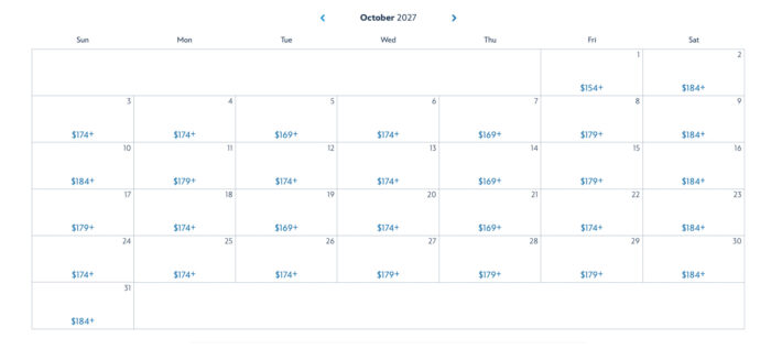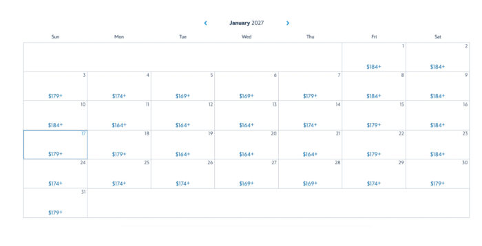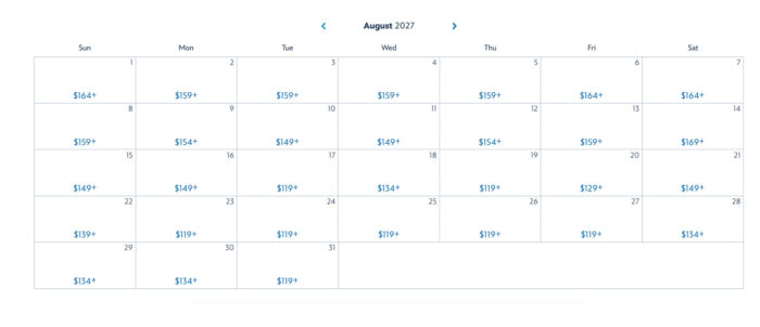 Let’s take a look at some ticket prices throughout 2027 — starting in January, where the lowest ticket price is $169 for one park.