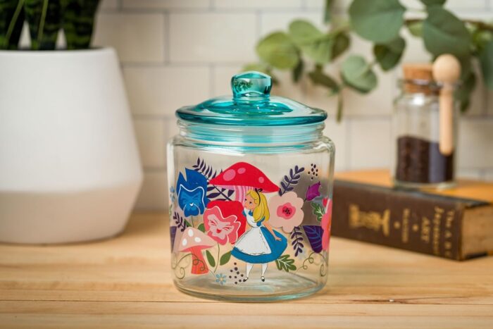 Not everything has to be a souvenir from the parks to feel like a Disney moment. The Silver Buffalo Alice in Wonderland Glass Cookie Jar features hand-painted flowers and mushrooms pulled straight from Wonderland, and it looks like something you would actually want sitting on a shelf. It is made from high-quality glass, the lid keeps contents fresh, and it works just as well for candy as it does for spices or little trinkets. It is a subtle, stylish nod to a Disney classic that doesn’t scream “gift shop.”
