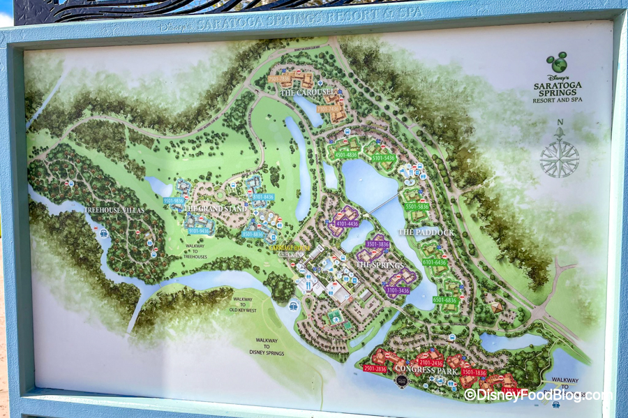 Saratoga Springs has its fans, but for a lot of Disney lovers in their 50s, this one lands squarely in the “why am I still commuting inside my hotel?” category. Saratoga Springs is a Deluxe Villa resort in the Disney Springs area with bus and boat transportation. One look at the resort map and you’ll see just how spread out the place really is, with sections like The Springs, The Paddock, Congress Park, The Carousel, The Grandstand, and the Treehouse Villas all spread across the property.