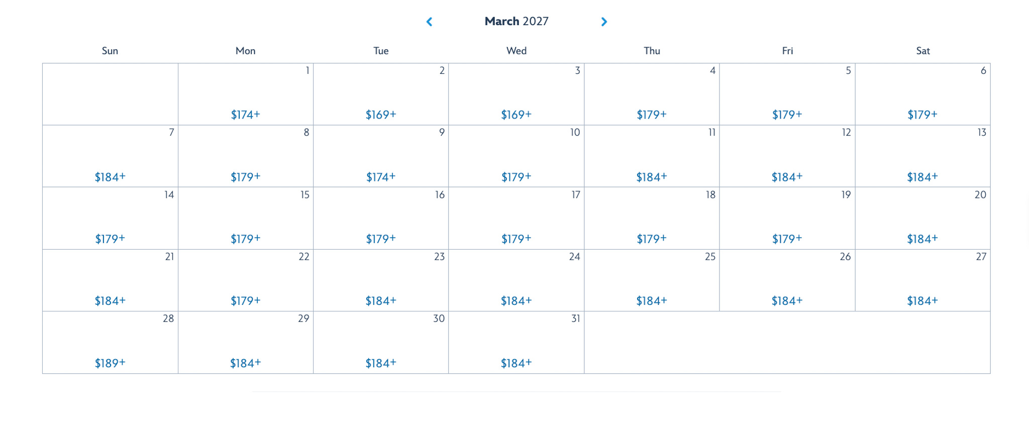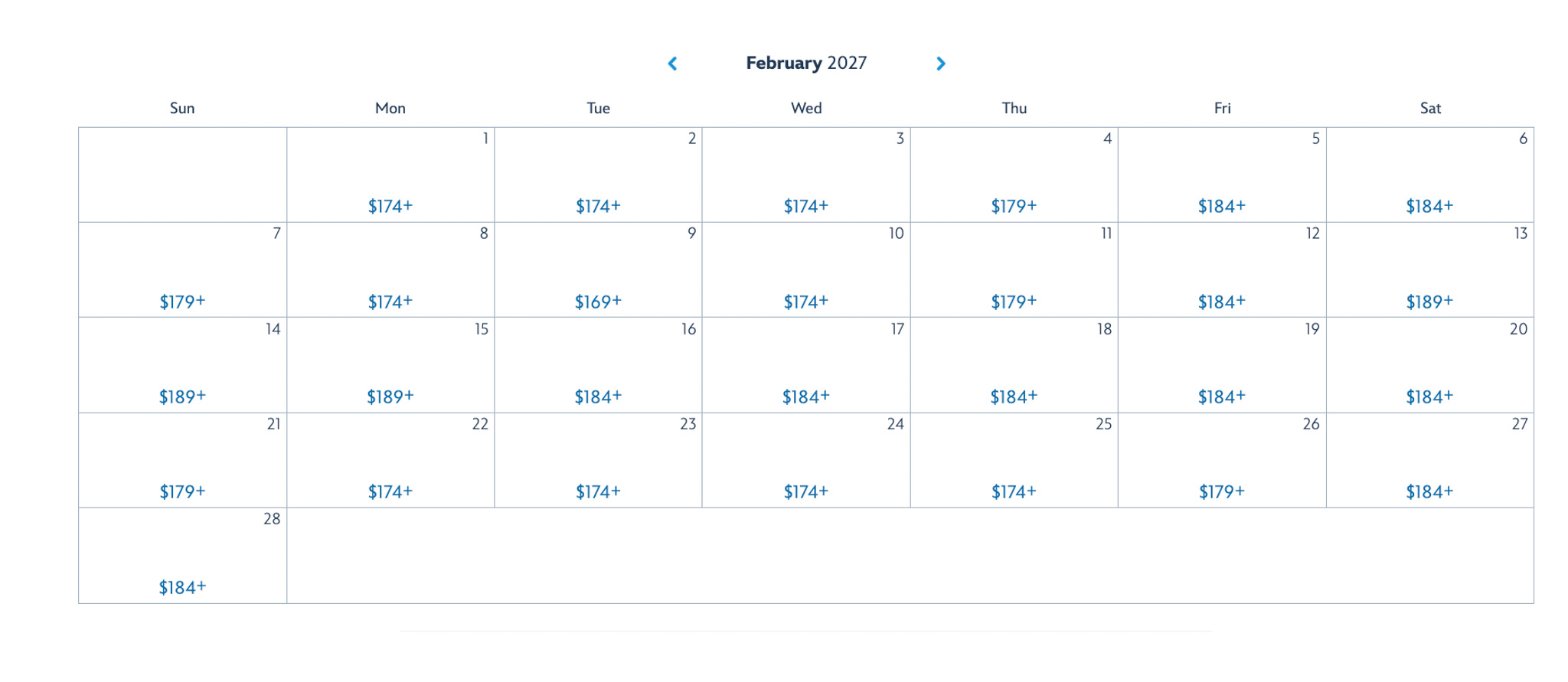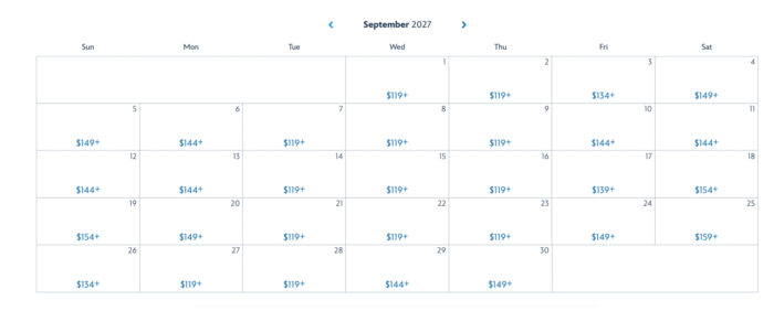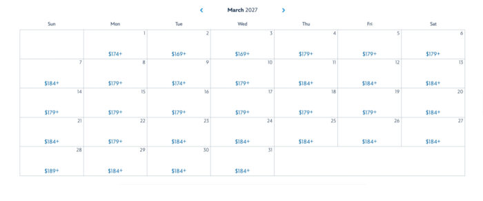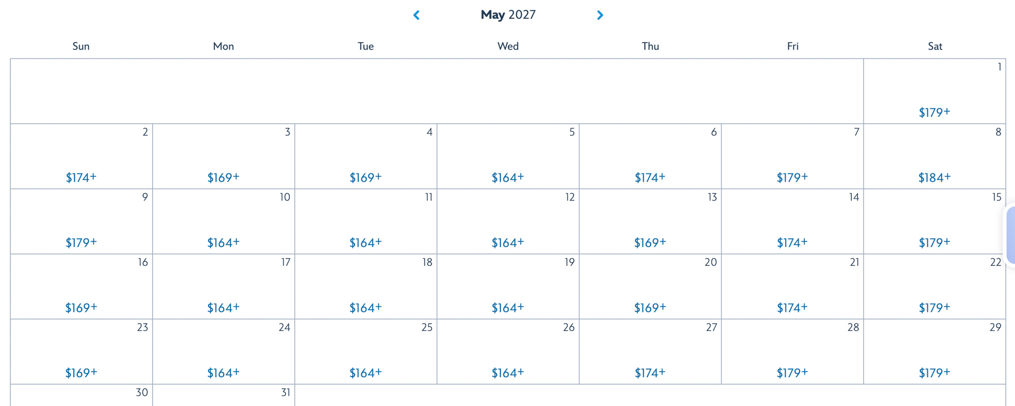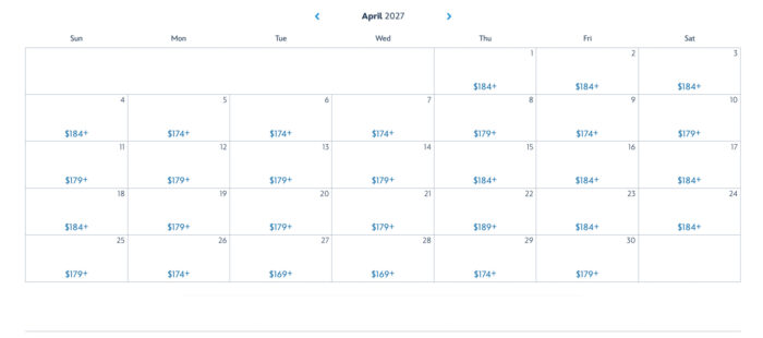 April has the cheapest ticket for this month sitting at $179 — this is when we see a lot of Spring Break action in the parks: