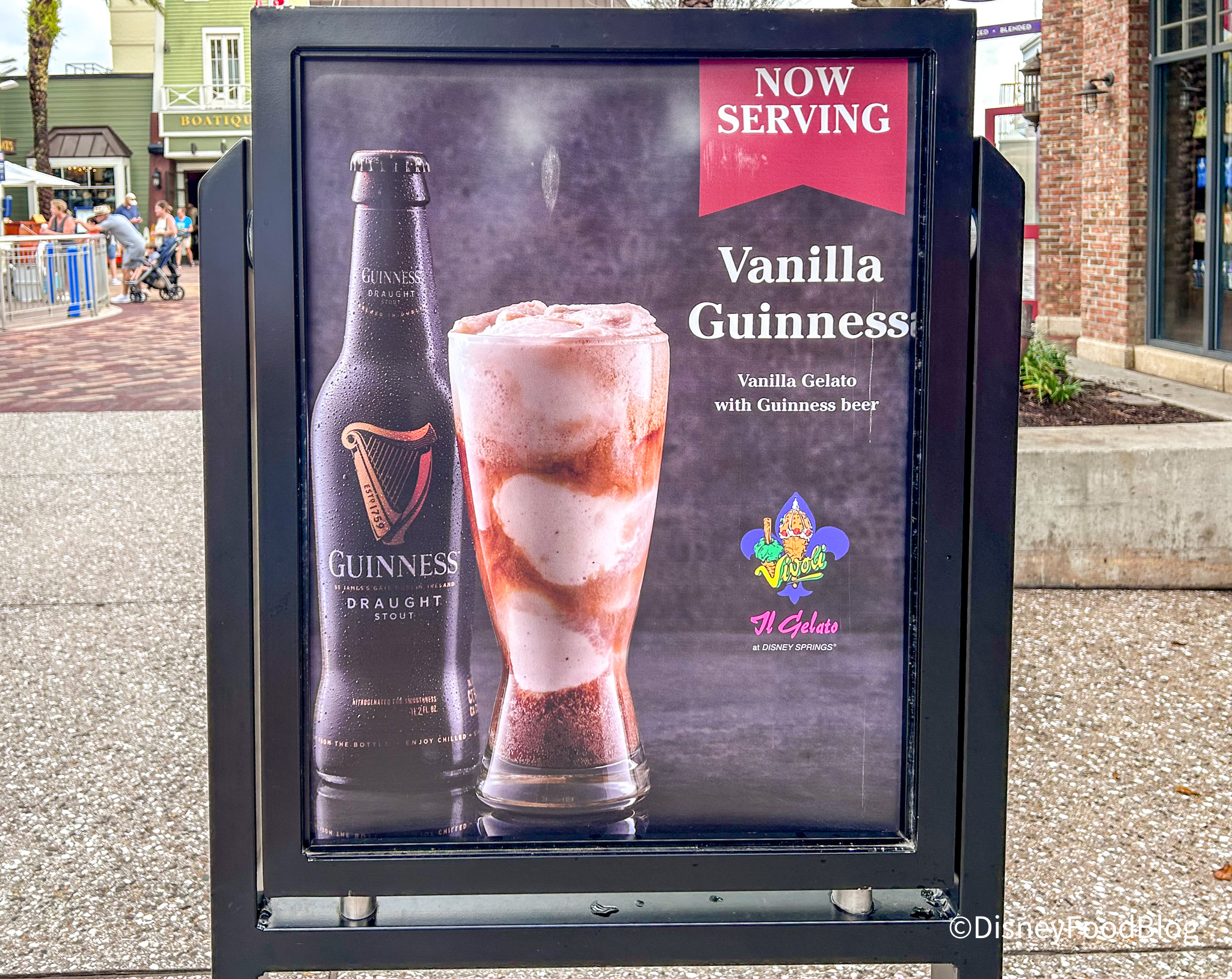 This Guinness Gelato is $7.25. It’s vanilla or chocolate gelato with Guinness beer. We opted for the chocolate version! You can get this at both Vivoli il Gelato locations, their brick-and-mortar storefront, or their gelato cart at Disney Springs.