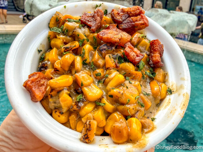 The Creamed Corn is $6 at The Polite Pig. It’s sweet creamed, roasted corn with salty bacon bits. This is only available until the end of April at Disney Springs.
