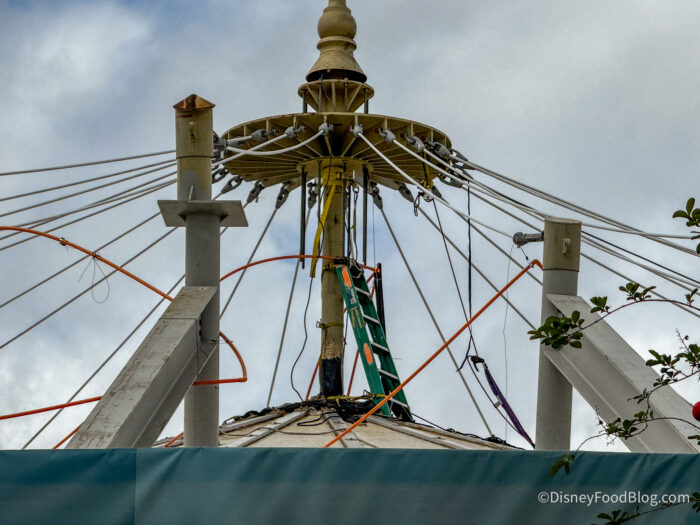 However, now there’s ANOTHER closure in the land as well. Big Top Souvenirs closed on February 20th, and Disney has said it’ll “reopen for guests to enjoy later this year,” but there’s no date in sight. When we stopped by recently, we noticed that the entire top of the store is GONE right now! Talk about a jumpscare!