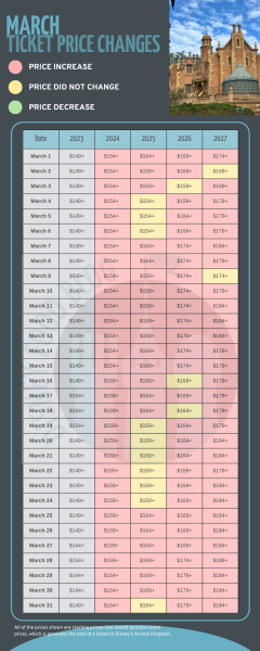 The cheapest dates for a Disney World trip in March 2027 will be on March 2nd and March 3rd. Ticket prices in March range from $159 to $189 per ticket.
