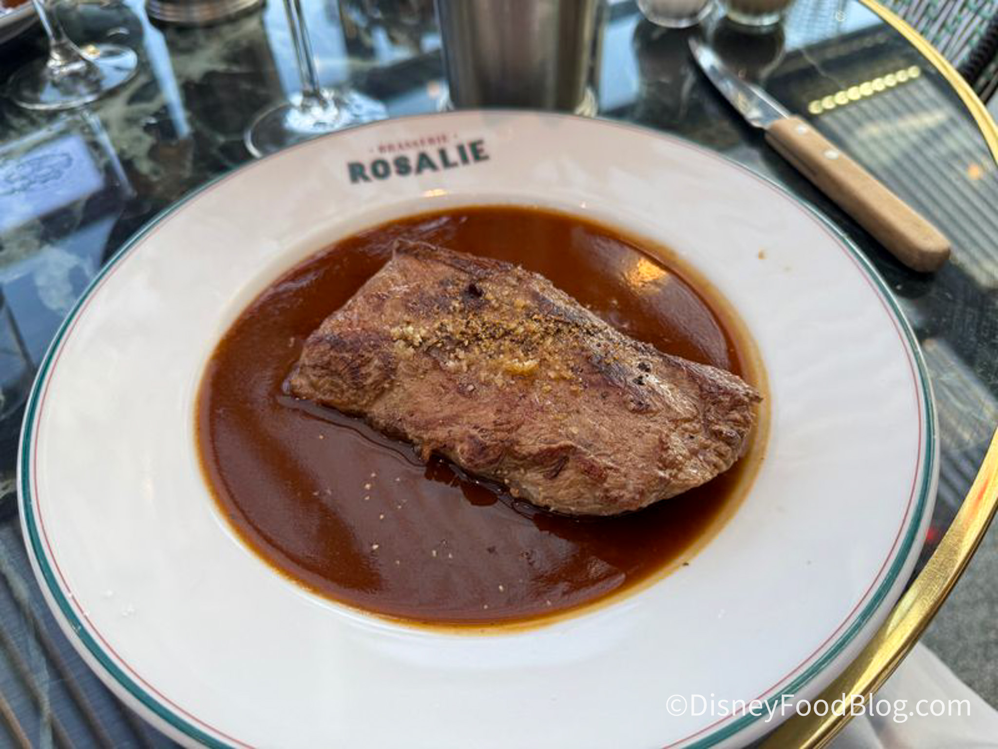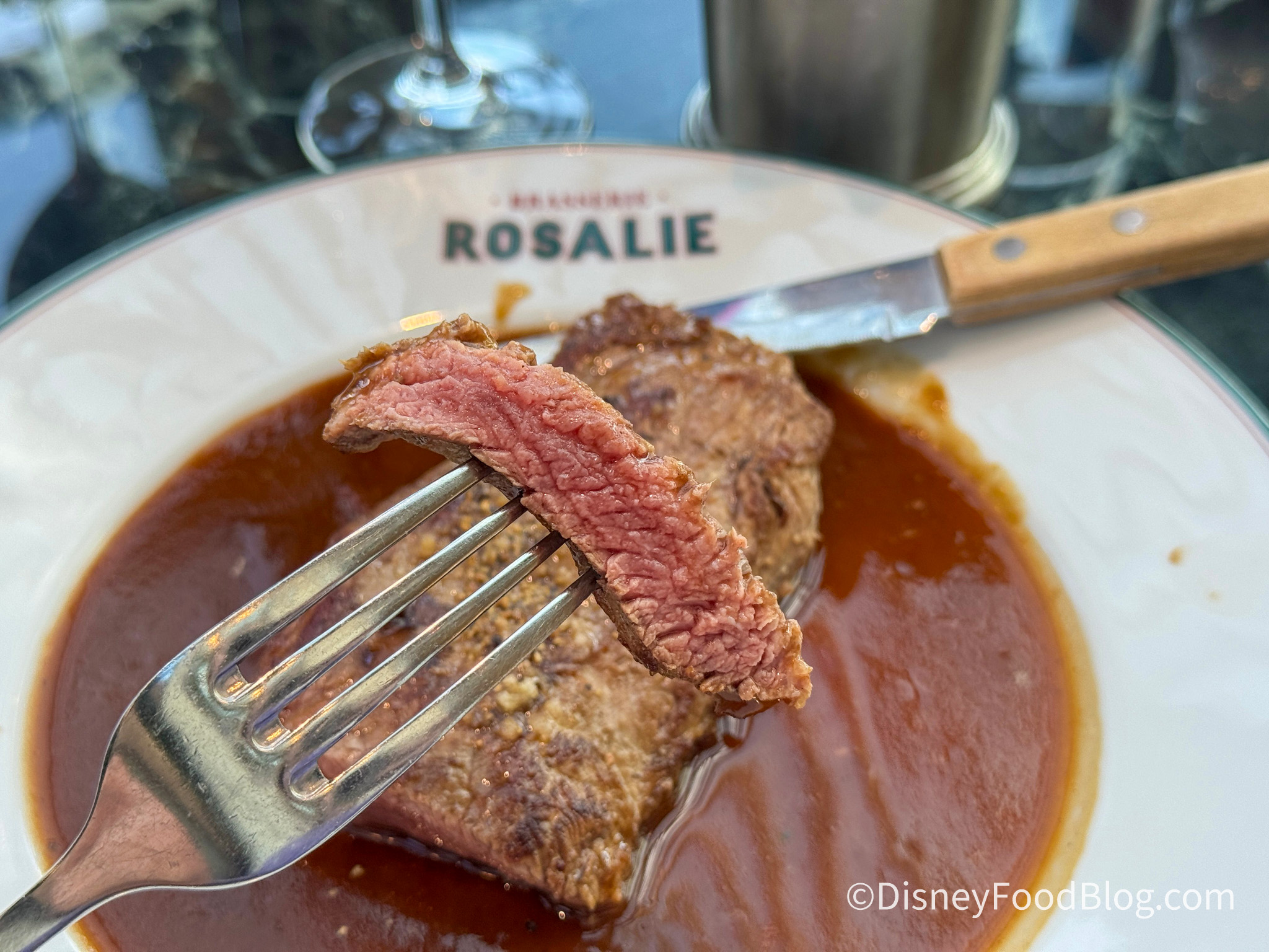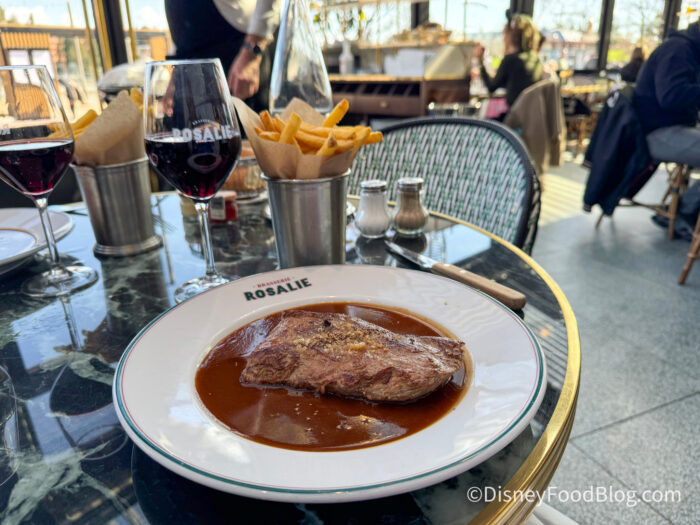 During our visit, we tried the Classic Pepper Steak with French Fries for €27.50…and we have thoughts. This is a simple steak, but some of the best steaks anyone could have are kept simple. When the natural flavors of the meat combine with some seasoning, magic happens. But we’ve dealt with inconsistencies in food quality at Disneyland Paris, so we were nervous, nevertheless.