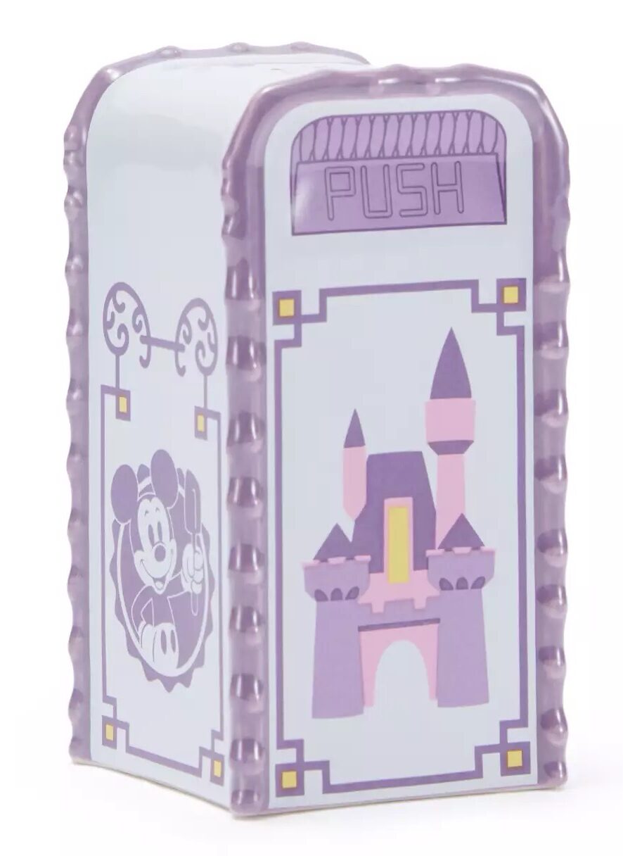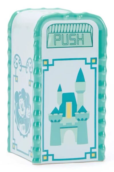 How cute is that? This version of the salt and pepper shaker is a beautiful teal color and includes images of Mickey and the castle, as well as the little push sign, really making it feel like a classic Disney trash can. It also includes seven small holes on top and a plastic stopper on the bottom, so it is both cute and functional!