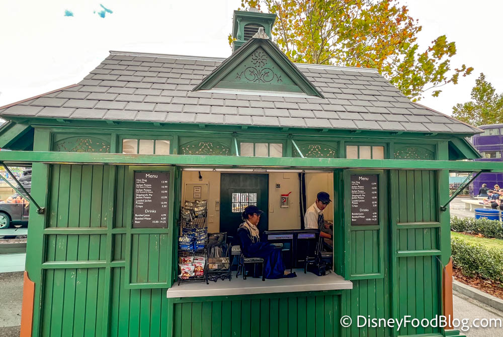 Our team recently went to the London Taxi Hut to try a brand new item! This is a small stand located outside the entrance to Diagon Alley and serves the iconic (and delicious) Jacket Potatoes! However, they recently added another classic British food.