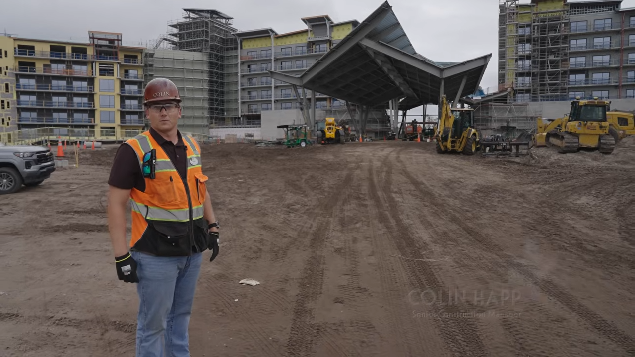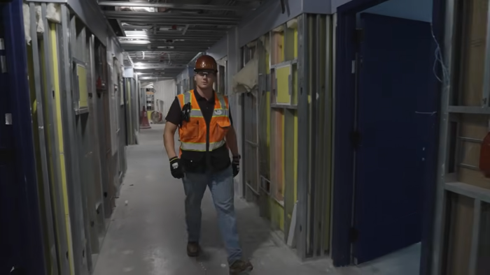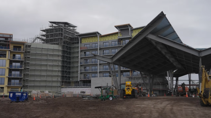 Right now, Disney is working on something called “rough in,” which means they’re at the construction stage after framing that includes plumbing, electrical, and HVAC ductwork installation. We even get a peek at one of the guest rooms, including some doors and finishes.