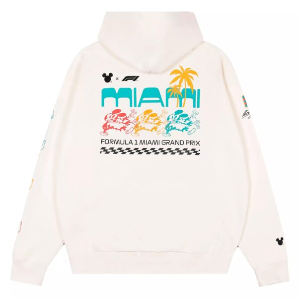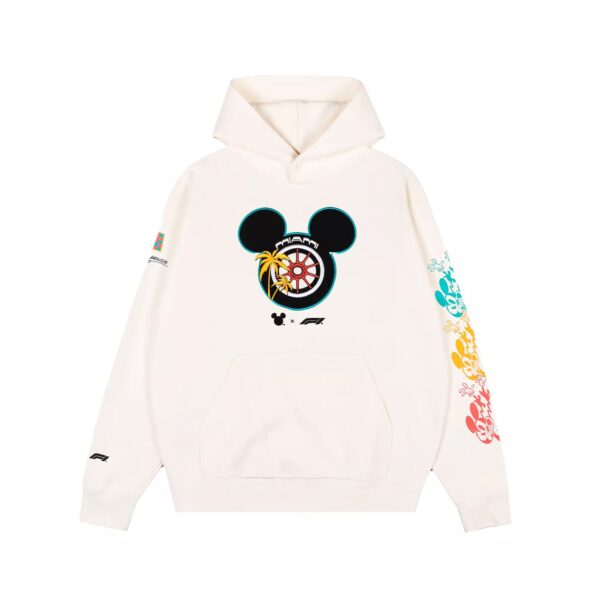 Looks like Mickey’s feeling the effects of the passing race cars as Disney and Formula 1 continue to rev up their exciting new collaboration with this pullover hoodie. Created specifically for the Formula 1 Miami Grand Prix 2026, the blended cotton design features three colorful Mickey Mouse figures on the back and left sleeve.
