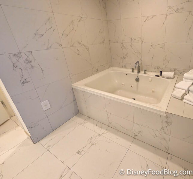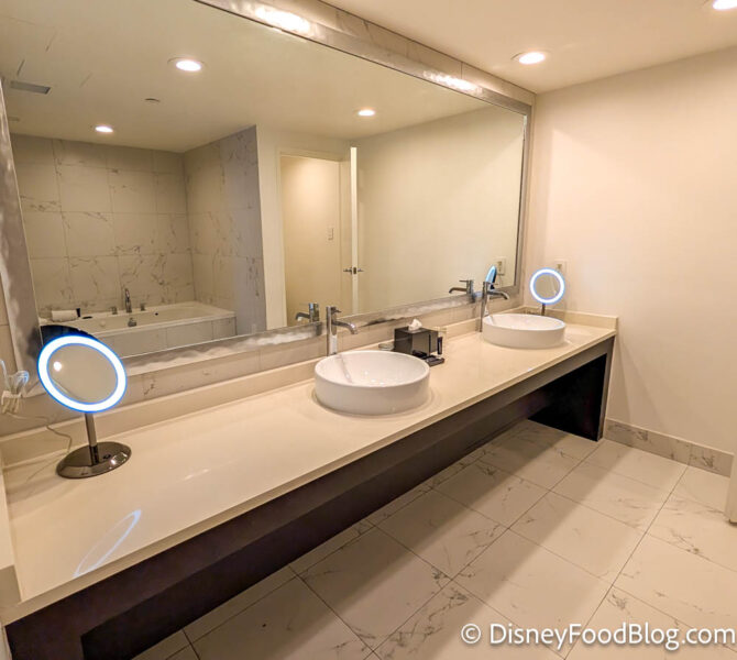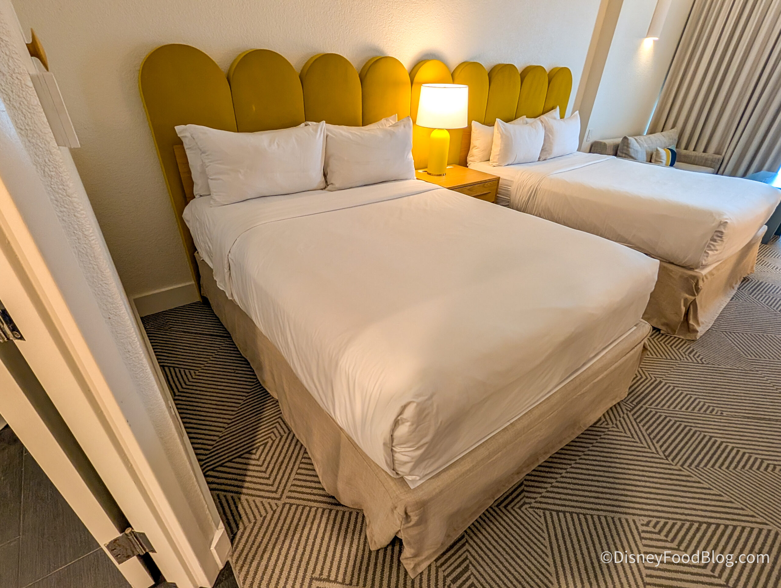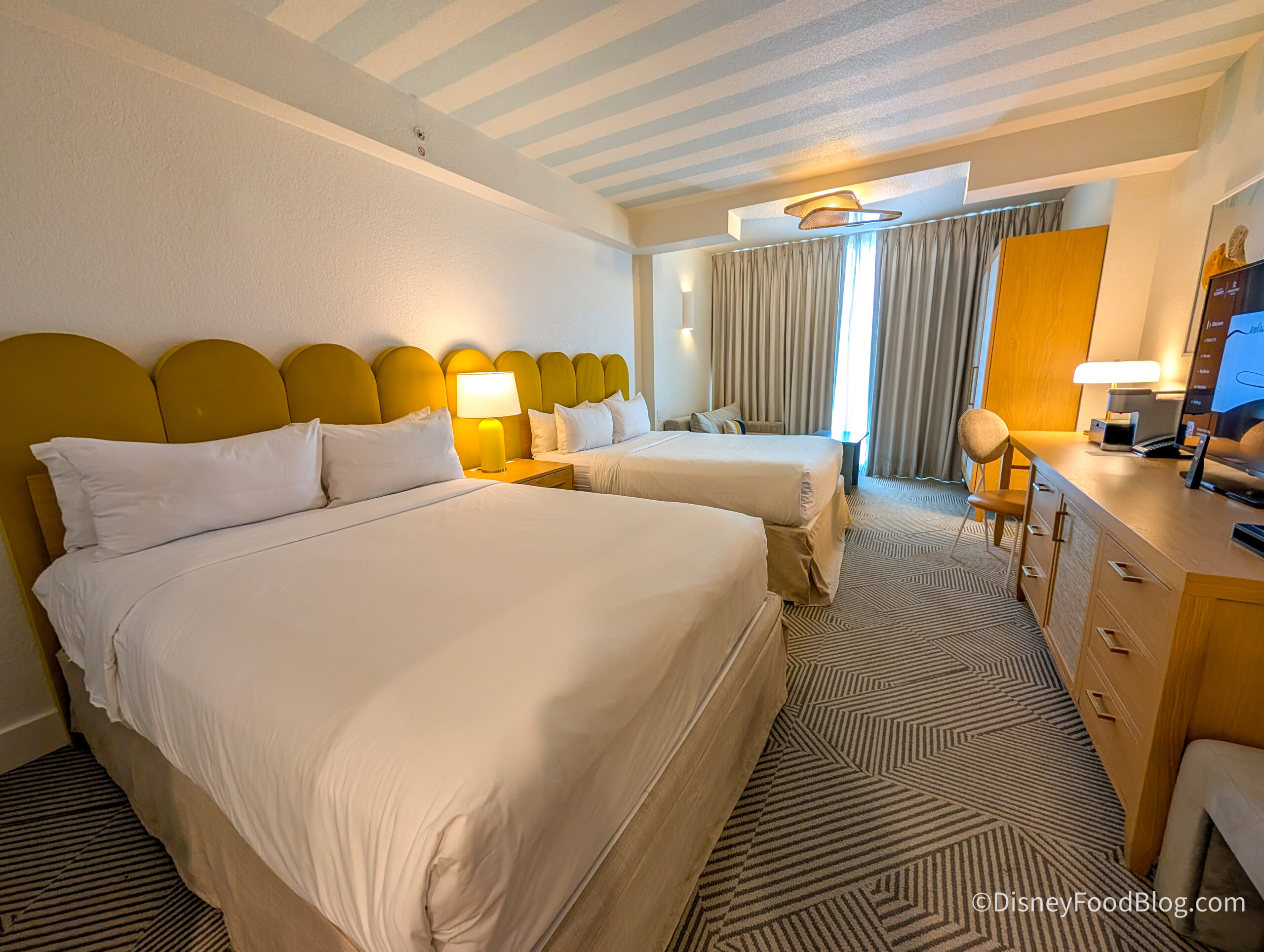 Just want a room that gives you somewhere to shower and rest your head at night, close to the magic? You’ll want to take a look at the Tower Rooms, which we found have rates starting around $138 a night. We checked out the rooms with two Queen beds on our tour, and you’ll often also find a pretty amazing view.