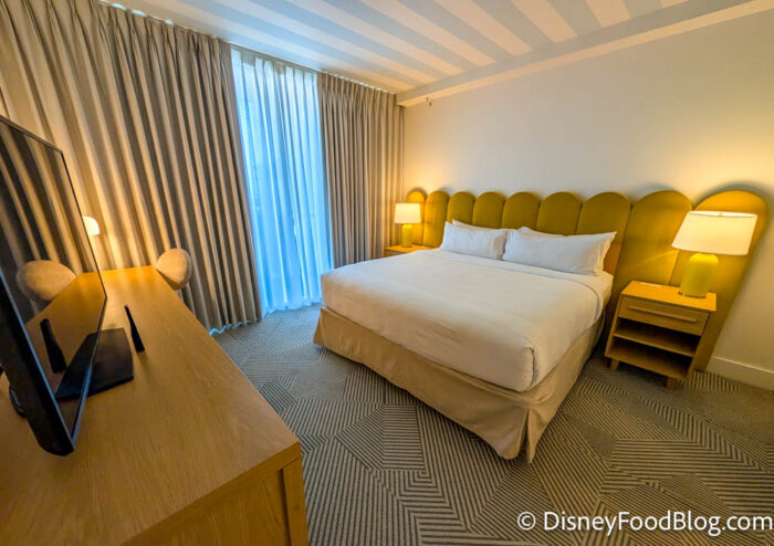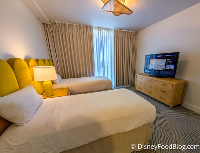 Unlike the family suites, the beds here are all in one room, which means it’s a great fit for families with younger kiddos whom they want to keep an eye on. We do love how the bunkbeds feature Mickey duvets — how fun!