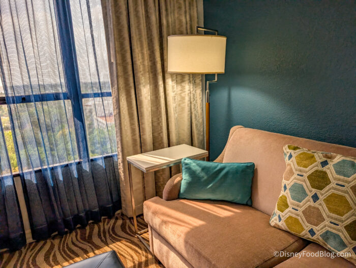 This room has a view that looks out over Disney Springs, which is pretty gorgeous, if you ask us.