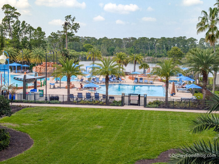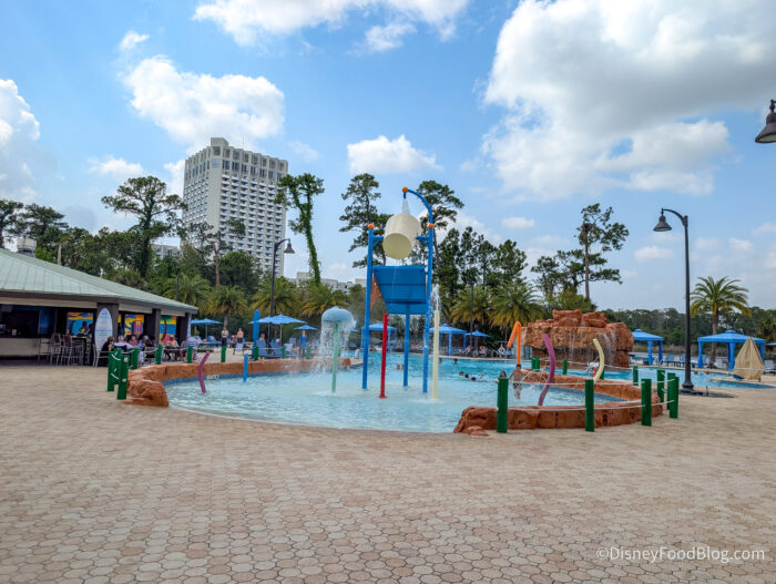 We’ve also gotta talk about the incredible POOL! This isn’t just any ol’ pool — it’s also got some super fun interactive elements that other pools on the property only wish they had. Honestly, we think it outranks a lot of the Disney-themed hotels on property, so if you and your family are people who really want a great pool experience, this is one you can’t miss.