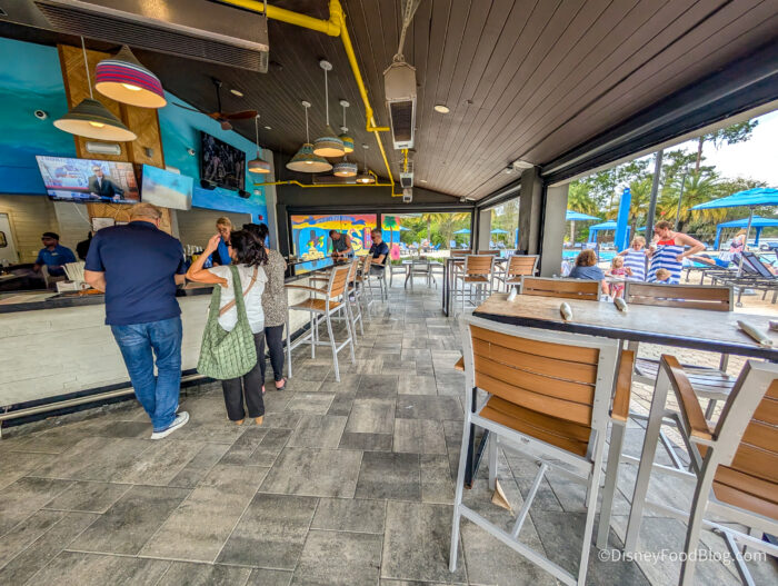 Thanks to its large size, in our experience, we’ve noticed that there’s plenty of space for everyone to spread out, which is essential to make sure you don’t feel too crowded. Now, during peak summer time, this may change, but it’s still much larger than many other pool decks on the property.