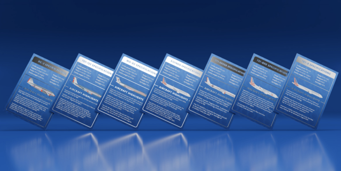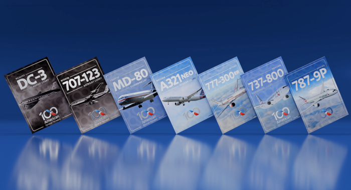 However, to celebrate the airline’s centennial anniversary, there are also three special edition trading cards available that represent the DC-3, 707-123, and MD-80, three aircraft that helped shape American history. Each trading card has an image of the aircraft, aircraft specifications, diagrams, and facts about each aircraft, plus specific aircraft registrations that give more context and historical facts about past and present aircraft.