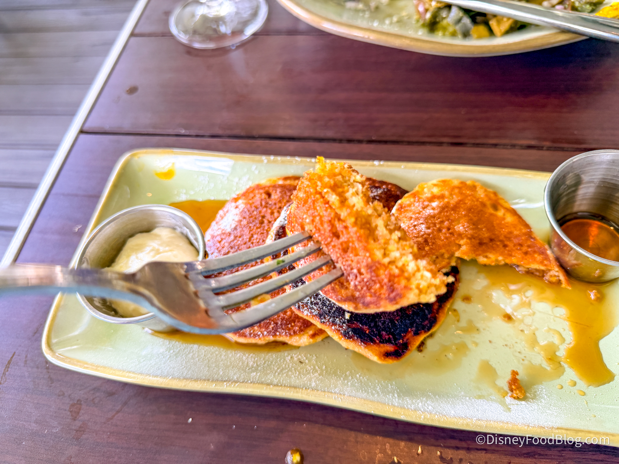 Our final dining option was none other than Pancakes for $10, which are Mini cornmeal pancakes with butter and maple syrup.