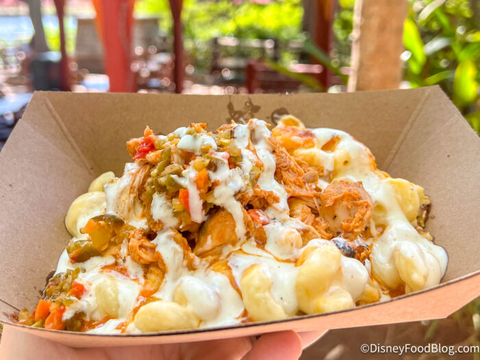 We’d recommend this mac and cheese to anyone in Animal Kingdom wanting a quick bite to eat. The buffalo chicken is very light, so even if you’re not a fan of spicy foods, you’ll probably like this. However, this was very filling – and we’re talking “ready to take a nap” level full. If you have a long walk ahead of you or are headed to a roller coaster afterwards, this might not be the best option.
