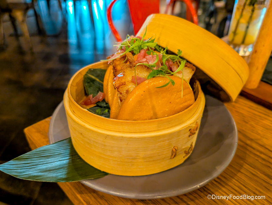 We also ordered the Pork Belly Bao Bun for $16, made with Braised Pork Belly, Pickled Red Cabbage, Pork Rind Dust, and Cilantro Aioli. The Bao Buns were SO loaded that they were messy, but we loved how much we got. The pork belly was tender enough that it almost melted in our mouths. Then you’ve got the cabbage that adds a nice crunch and acidity. We will note that we didn’t get a lot of cilantro from the aioli, but it was enough to add a hint of extra flavor, but we know some folks don’t like cilantro, so we’ll warn you it’s in there.