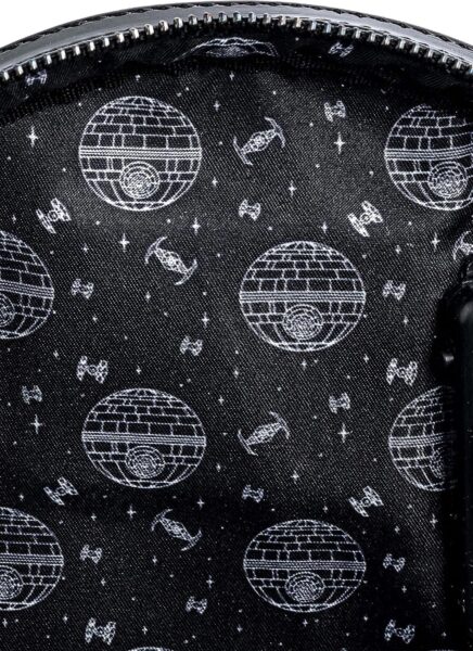 Now we turn to the Dark Side, where the lighting is moodier, the breathing is heavier, and the accessories have better posture. The Loungefly Women’s Star Wars Darth Vader Light Up Cosplay Double Strap Shoulder Bag Purse is for the Star Wars fan who does not merely visit Galaxy’s Edge. They arrive.
