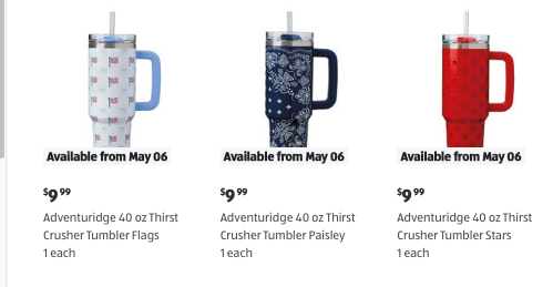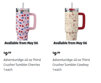 They also have tumblers with cherries and cowboy prints. You’ll be able to grab them starting May 6th. You seriously won’t find tumblers anywhere else that are this cheap, especially ones that are 40 oz.