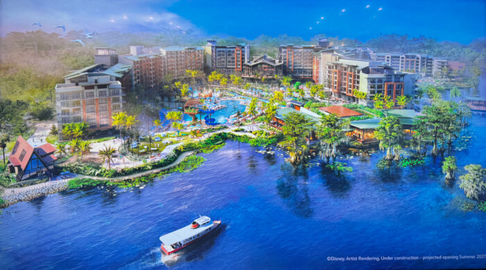 This brand-new hotel is opening sometime in the summer of next year, but we were invited to check out all the progress Disney has made so far, and let us tell you — we think you’re going to LOVE it! First, we’ve got a look at some brand new concept art that Disney shared with us. Here’s a good look at the full resort.