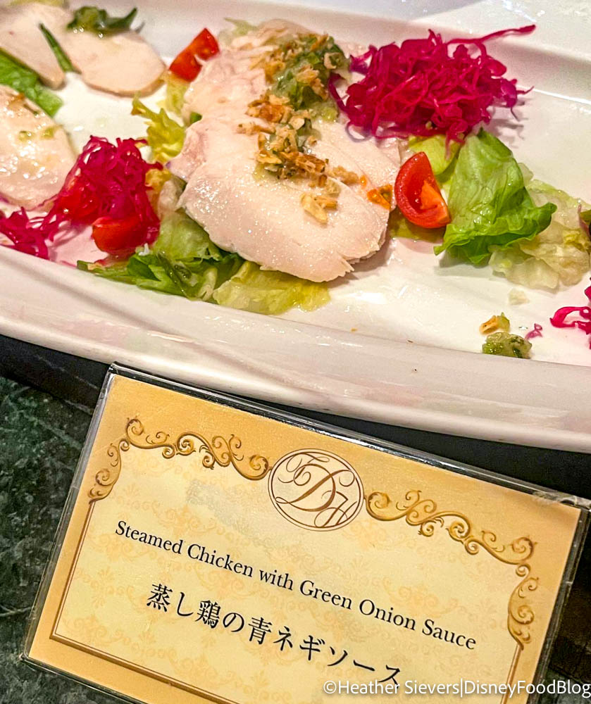 2022-tokyo disneyland-hotel-Sherwood Garden Restaurant-dinner buffet-steamed chicken and green onion sauce By Sara McOmber Leave a Comment